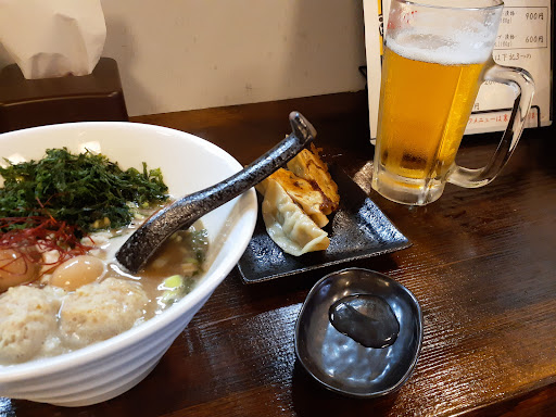 22年11月時点、土日のみ昼営業してるようです。昼はラーメンと餃子メニュー。 ポルチーニラーメン醤油を注文、スープにポルチーニの香りが溶け込んでいて美味しい。具材はうずら卵、つくね団子、岩のりとこれまた特徴あり美味しい。麺はのびやすめなのか後半食感がだいぶ落ちた、ビール、餃子と一緒に時間かけてたべたからだけど。 テーブル備え付けの調味料は一切べとつきがなく、またキッチンの中は用具、調味料がきれいに整理されており、清潔感がハンパない。レジ横が駄菓子コーナーになっていて、色んな駄菓子がキレイに並べられていて見てるだけで楽しい。 店主と常連客の会話の中で、ラーメンを提供するのはなかなか大変らしい、1000円ごえの値打ちは十分にあると思うしまた食べたい...