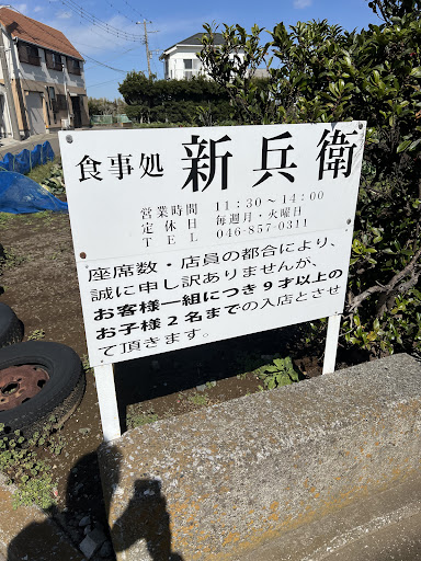 1回目 横須賀市長井に来たので、いつもならばあらさき亭(ちょうど、水曜はお休み)でランチだが、ソレイユの丘から徒歩5分(車は軽自動車しか通れない道。普通車でいくとソレイユの駐車場¥1000を利用せざるえないかも)、というなかなかレア感のある新兵衛...