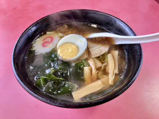 醤油ラーメンはしっかりした塩梅のスープに 少々かんすいの香りを感じるちぢれ麺で 昔ながらではかな?…と思いながらも 最後まで食べ切れる品。