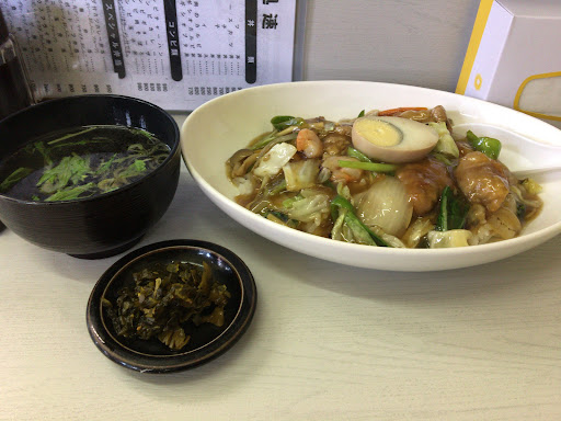 私は五目そばを注文。 一見、普通の五目そばに見えましたが、まずはスープを一口飲んで 思わず「うまい!」と感じた。 続いて麺、野菜これまた「うまい!」 チンゲン菜、ネギ、玉ねぎ、 白菜、にんじん、チャーシュー、小エビ、ホタテ、イカと物凄いボリューム! スープまで完食し大満足でした。