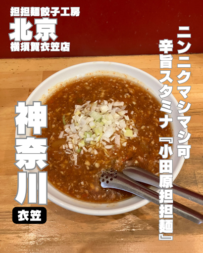 担担麺餃子工房 北京横須賀衣笠店@ 神奈川県横須賀市衣笠栄町1-70 どうも、さぴおです ✍️担担麺(大辛・ニンニクマシ) 950円 ______________ 🍥ポイント ✅ニンニク、ザーサイ、挽肉のとろみ餡搭載!スタミナ抜群の小田原系タンタンメン! ✅ニンニクマシ可!めっちゃニンニク香ります ✅一説には小田原系タンタンメンの元祖より早く提供していた…?  ̄ ̄ ̄ ̄ ̄ ̄ ̄ ̄ ̄ ̄ ̄ ̄ ̄ ̄ [点数] 85点 ☆4.0 [アクセス] 『衣笠駅』(118m) [休日] 月 [注文メニュー] 担担麺(大辛・ニンニクマシ) 950円 [並び・システム] 並びなし・口頭注文後会計 [味] ニンニク