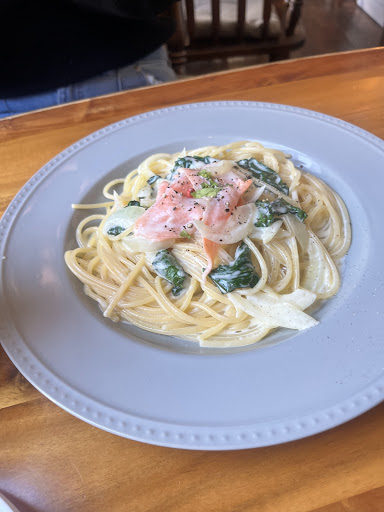 パスタはつるんとしてるのにアルデンテ感がちゃんとして、サーモンも柔らかく半生のようにしっとり。あたし、これめちゃくちゃ好きだわ(o^^o)