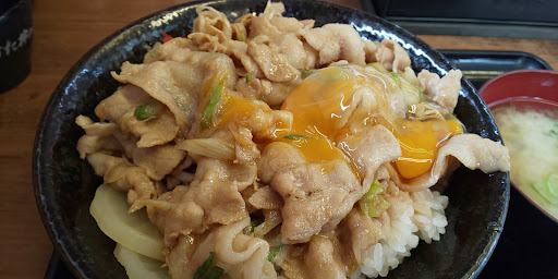 Read moreロードサイド郊外店には初参戦。 場所は横横佐原インター近く。 煩わしくないレベルで元気のよい接客です。 券売機は都市部と異なり、現金先投入。これは迷います。電子マネーやクレジット💳には非対応。駅近都市部店舗と異なり、ロードサイドお弁当テイクアウトニーズも多いから、ですかね。 調味料(醤油、辣油、大蒜、七味など)は必要に応じてセルフで持ってゆくスタイルです。 いつもは、すた丼肉増し+生玉子追加なのですが、今回野菜が食べたいので、すたみな肉野菜定食肉増し+生玉子に。 なぜ生玉子を追加したのか。 すた丼さんの白飯(お米)は何処も固い炊き上がり?で、デフォに加えて追加生玉子がとても合うから。 ボリュームとすた丼の肉が目的でタレに浸して楽しむので、白飯単体を味わうお店ではないですからね。 定食の場合はどうしても白飯が登場するので、肉野菜タレも投入して玉子かけに。 早め着丼は嬉しい。 肉野菜炒めはすた丼と同じお味、安定の旨さ。 オイスターソース味や塩味(味覇味)ではない、リピしたくなる大蒜が効いた味。 このタレと生玉子、調味料大蒜を追い足ししてご飯にかけていただきます。 あっという間に完食。 約1,400kcalのハイカロリーで、夜まで乗り切れ...