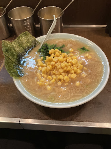 This place serves Yokohama style tonkotsu (pork bone broth) ramen. You can also get rice but it's ultimately a ramen shop and the ramen itself is enough to fill you up. It's a small shop in between Lawson's and Coco's Curryhouse that seats about 12 people. Orders are placed at the ticket machine by the door. The owner then will ask for your ramen preferences for the soup and noodle firmness by gesturing to his giant sign.