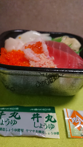 Read more2021年2月に利用。 丼丸のフランチャイズ店です。 海鮮丼のテイクアウト専門店です。 ほぼすべて500円均一、シャリ増し+100円、ネタ増し+200円です。 毎月10日、20日、30日は消費税が割り引かれます。 この日は、人気ランキング1位の海峡丼のシャリ増し(500円+100円)をいただきました。 マグロ、イカ、カニのほぐし身、トビっこ、ホタテ、いくら、甘エビが入り、これで500円と驚くばかりです。 マグロはイマイチでしたが、ホタテとトビっこが美味しかったです。 メニューの種類が50種類以上と選ぶ楽しさもあり、満足です...