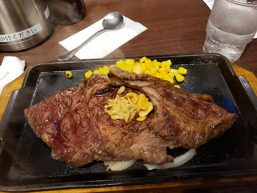 The place is small and only has high chairs making the seating not ideal for families with children. There is a take-out option which is convenient during this time of the coronavirus pandemic. The steak I ordered was a 20 day aged Japanese Sirloin steak 300g and my wife ordered the 300g Ribeye center cut. Both steaks were cooked medium rare and had about 100g worth of fat. It was served sizzling hot on a hot cast iron plate like most teppanyaki style restaurants, but the condiment/sauce options were more diverse. We ordered a hamburg steak for my son, the plate was a little too hot as it cooked the hamburg steak very causing it to be dry and hardened on the outside. My real issue, however, was the high chairs. It was too high for not only my son but also for my wife and me. I don't know if it's just me being an American and acting like spoiled baka-gaijin but I'm used to eating steaks sitting down comfortably without the struggle of sitting upright the whole time. Just a small adjustment, significantly altered my dining experience. The meat itself was not bad, but next time I'd rather eat at a pepper lunch for the extra bang...