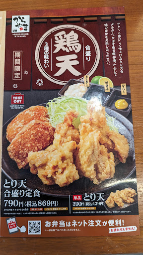 令和6年3月に家族で再利用。 からやま定食(4個)【税込759円】と期間限定の合盛り定食(にんにく)【税込759円】とからやま焼きの親子丼【税込649円】とポテトフライ【税込165円】を注文。 家族で分け合いましたが美味しかったです。 年末大感謝祭の時にはありませんでしたが今回はイカの塩辛も無料で食べれました。 100円割引券も3枚使え...