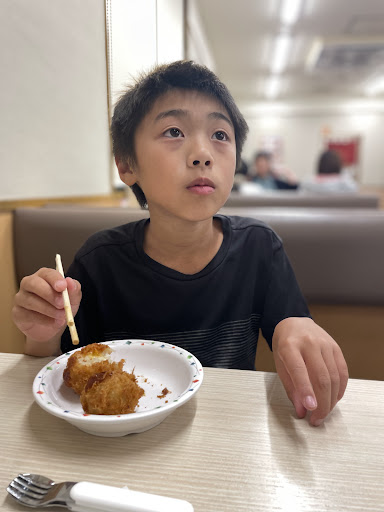 在2024年这个时代,500日元左右一碗牛肉丼是非常实惠的价格。正在长身体的孩子们吃得多,所以他们会点一些土豆饼和虾炸等小吃,搭配大碗饭一起吃。