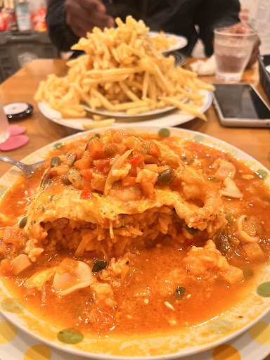 Read moreVariety restaurant (burgers, curries, pasta, deserts, and drinks). Portion sizes are generous, taste is average, and the service is amazing. Friend got the medium fries, and we had to remove a plate full of fries to even see the giant 20cm (8in diameter burger). The Burger buns are light and fluffy, generous with the vegetables (big soft-ball sized tomatoes), while the protein ratio (burger, bacon, fish, egg, etc.) is average to low (depending on your extras).