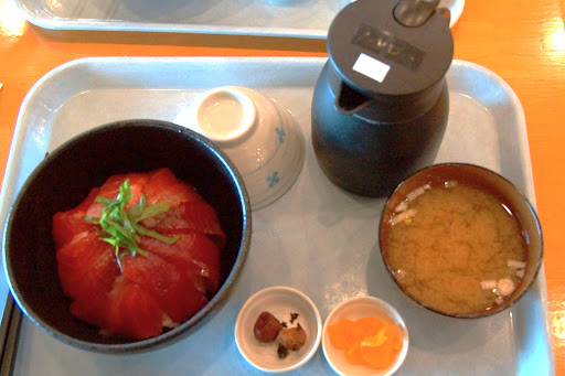 注文したのは三崎港の【漬けまぐろ丼】税込1900円24’12月、場所柄あまり期待はしていませんでしたが 色鮮やかなマグロが9切れ?一切れのサイズは寿司ネタぐらい 鮮度が良いのか適度な弾力があり臭みは一切無し、程よく脂も乗っていて意外と美味しい 余り漬け感は無かったのでワサビ醤油追加、小鉢に漬物と梅干が2個、出汁入りポットも付いていて、出...