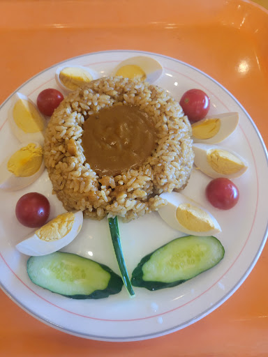 There are 4 restaurants and 1 drink vendor inside the building. A partial menu is posted outside, but you place your order on one of two kiosk machines just inside the door. Your order number goes on an overhead screen to show that's it's currently cooking and will move to the "done" side when it's ready to pick up. I couldn't tell which vendor my order was made by (or I missed it) so I had to ask for help. The drinks being sold separate, even for water, was inconvenient, as the drinks had a long line. Staff was helpful and kind....
