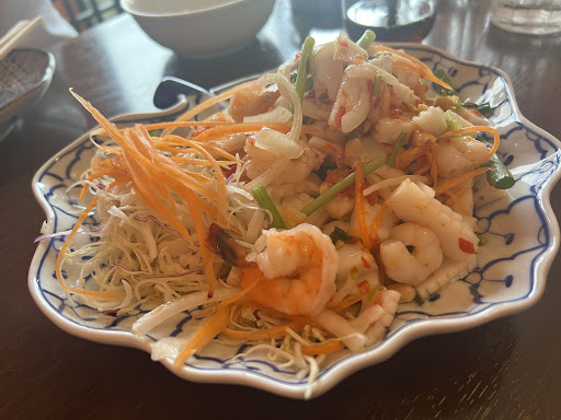 4番目に出てきたのがなんとシーフードサラダ、笑 1番目の予定のはずが恐らく調理工程の関係で最後にされてしまいました😅 このサラダが1番辛かったです!!!!辛いものが苦手な方は注意⚠️ ただサラダというよりも75%イカ、15%エビ、10%野菜くらいでほとんどイカでした!🦑