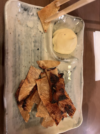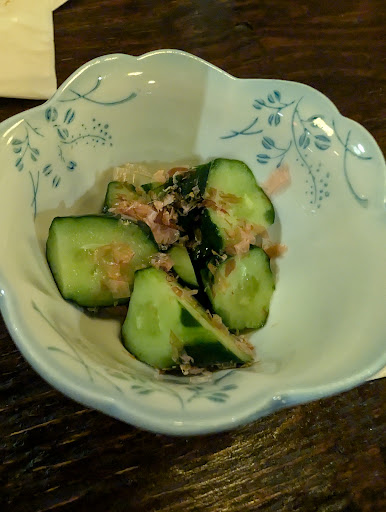 Very close proximity to our home, had walked by it many times since it’s right at the beginning of “Blue Street” … small seating tables with cushions on food crates as chairs, very cozy Izakaya feel. Counter space as well. One restroom inside too. They have an extensive menu with daily specials, also a hand written, translated menu in English. The service was very attentive & kind. Music playing was American rock, I think the staff had their own band posters on the walls. I think they have a group?