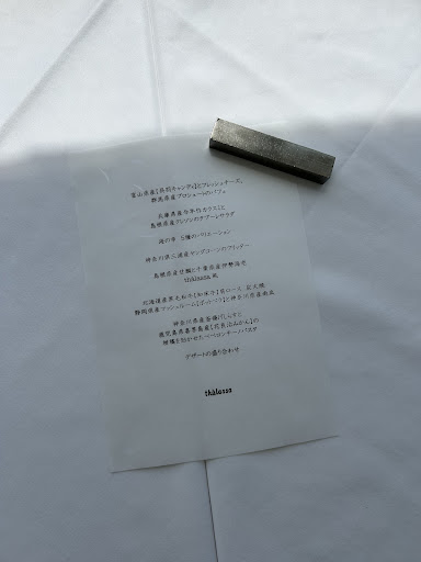 インスタでお店の雰囲気が素敵だと感じ、記念日のお祝いで利用しました。 12時からの予約で、店の前に11時55分に着いたら、12時からしか入れないと言われ外で待たされました。それはまだよしとしました。仕方ない事だと外で待ちました。時間になり中に入り、ドリンクを注文しましたが出てくるまでに15分かかりました。提供が遅いなと思いましたが、私達にとっては大切な日でもあったので、ここは提供遅いんだね、など話しながらコース料理が始まるのを待っていました。しかし30分経っても料理はきませんでした。その間に2組のカップルが来店してきて、2組目が来たのが12時40分近くだったのですが、その客と同じタイミングで私達の料理がスタートしました。こちらは12時から予約していたのに、予約の意味とは?店員から一言あっても良いのでは?その後12時50分頃になりようやく一品目の料理が始まりましたが、味は至って普通。特別凄く美味しいというよりはこんなものか、という感じで待たされた割にこの量、この味かという感じでした。今まで様々なコース料理を食べましたが、コース料理は量が少ないながらも8品もあればかなりお腹いっぱいになるものだと経験上期待していましたが、ここは全く満腹感が得られませんでした。待たされすぎたからなのでしょうか?よく分かりませんが、、、。最後のメインがパスタで、持ってくる前に店員さんがお腹いっぱいであれば量を少なめにできますがと声をかけてきて、私達は普通で大丈夫ですと答え、いざパスタが来てみると、この量で普通なら少なめにしたらどんな量になるの?というくらい少なかったので、思わず笑ってしまいました。笑そして、記念日だったので別料金でプレートを頼んでいたのですが、私達のテーブルに来るはずのプレートは初め別の卓上に運ばれ、お客さんが違いますと言って店員さんがミスに気づき、私達のところへ運ばれてきました。店側はちゃんと確認していたんでしょうか。私達にとっては大切な日に選んだお店だし、値段もランチで1人15000円は正直高いけどそれなりのクオリティーだと信じて予約していたのに、これならいつも行っている七里ヶ浜の鉄板焼きのお店の方が全てにおいて上回っているしそちらにしておけば良かったとほんとに後悔しました。座席も窓側の席はプラスで3000円支払わなければいけませんが、まず全部が白だから眩しすぎなのと、空調が付いているのについていないと感じさせるほどの暑さで、ロケーションが素敵と思い予約したくなりますが、予約しない方がいいです。3,000円も出すほどの価値はないと思います。上記に書いたサービスがなければ、暑いし眩しいけど素敵だから良いかと思えたかもしれませんが、そうではなかったので余計窓際の席を選んだ事後悔しました。ドリンク代、席代、もろもろ合わせて37000円弱。値段とサービスが釣り合っていません...