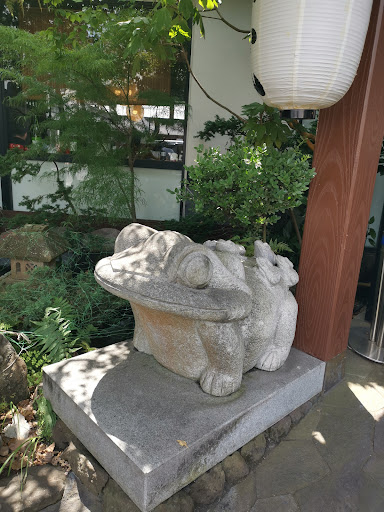 店舗は和風で落ち着いた感じ。 カエルがお出迎えしてくれます。