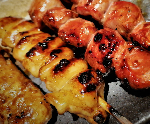 焼き鳥5本盛りとつくね三種盛りはとても美味しかったが、つくねの卵を別皿に入れるのを忘れ、直接卵がのってた。