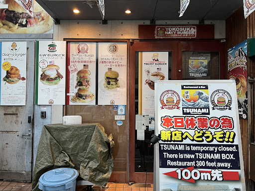 Rainy weekday night before 8 PM. Parked at a nearby coin parking. We found original Tsunami closed, and the sign told us to go here, so we came. Good burgers…. But you do have to think of this place as a kind of Disneyland. We don’t pay 1500+ because the taste and amount are “worth” the price; rather, we pay to get a taste of the Yokosuka experience. (Personal opinion lol.) No dissatisfaction with the young male employees- they weren’t rude per se and we don’t have a problem with them chatting when they don’t have anything to do, but reading the reviews I do see why since customers might be a bit upset. Hard to explain, but it seemed they weren’t… used to welcoming and serving customers professionally, kind of..? Definitely the owner’s responsibility to train them better. Ganbatte cause it ain’t cheap food! (Wish the price at least included a few fries..!) Thanks for final memories on our last night...