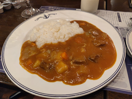 I ordered the special beef navy curry set for 1650円 which comes with 1 curry rice, macaroni salad, a glass of milk, and a after-meal coffee.
