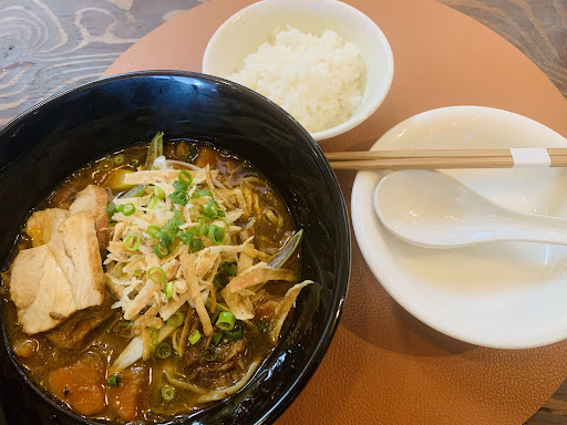 カレーも、麺も、スープも、かなり本格的な仕上がりです。麺は、手打ちと思われる太平麺でモチモチ感とコシが凄いです。一般のラーメン屋さんでも十分出せますね!