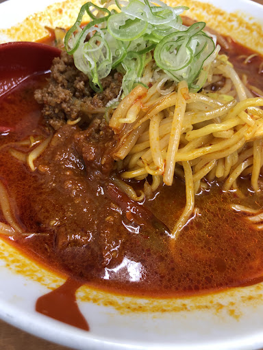 Read more食券制です。爆風辛みそ頼みましたが、旨味と辛さが丁度よくうまいです😋辛いのが苦手の方はキツすぎとまでとは言いませんが、酢など入れて美味しく食べられると思います。私はトッピングの赤ダレ1倍を入れて食べました。赤ダレは別皿は出来ないそうです。混ぜる前は旨辛ですが、赤ダレを混ぜると激変します。喉に噛みつかれる感じで、躾がなってない犬に噛みつかれるような辛さ。多分、ジョロキアが入っているのかなって思います。くせになりますね。赤ダレは最高 5倍まで頼めるようです。少し不安なのはアフターファイヤーくらいですが(°▽°) 追記 令和4年2月現在 赤ダレが無くなり、辛みが中辛、大辛等に変わりました。中辛食べましたが、以前のようなジョロキアの辛さはなく、ちょい辛に格下げで残念になりました。また、デカ盛りタンメンがデカ盛りでなく、ただのタンメンに格下げになりました。またまた残念。 追記その2 久しぶりに訪問。相変わらず昼は外まで行列。爆風辛みそはやはりおいしい。でも、中はボックス席に一人座らせたり、中の席案内がなくうろつく客が...