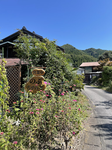 ・埼玉県入間市~長野県茅野市を結ぶ国道299号線を埼玉県側から向かって横瀬川を過ぎて次の右折交差点(小道)を曲がり住宅街の坂を上ると現れる「和み処のぶちゃん家」さん。 ・普通のお家?!と思ったら、その横にテラスを併設したお食事処が。ご自身の住宅とお食事処を同じ敷地に構えていらっしゃるように思います。