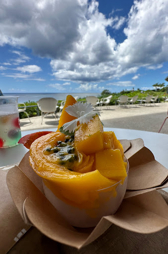 Read moreI got here right before it got really busy, around 1030am, so I had no wait time for my coffee and food. I left around noon and there was a long line and most tables were filled with people. There is a lot of seating and space, right next to the cafe are tables set up in the shade and then there are wooden stairs that take you down to the beach. Along the way of the stairs are multiple areas where larger groups of people can sit and enjoy the view in the shade. Most of the seating does have shade but there are a few areas where it can get pretty hot sitting in the sun. I came here to grab coffee and read and it was a great experience ☺️ Parking was easy, the place is easy to find, and the staff is super friendly. The menu is pretty simple and is in Japanese and English. The food was fine, nothing special, but the view makes up for anything lacking there. Will definitely be coming back with some friends...