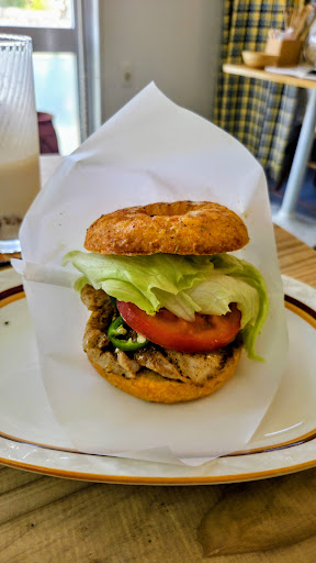 They offer a variety of bagel sandwiches and a soup of the day — when I visited it was a spinach potato. It wasn't on the menu, but I saw they offered banana Lassie so I asked if they could do a banana smoothie, and they happily obliged. It was refreshing and rounded out the meal perfectly.