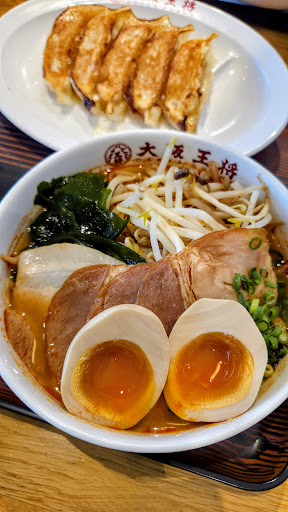 For a fast food restaurant, I would say it's pretty good. Their main dish is obviously the gyoza, and they have many set menus, including this, together with other dishes such as their ramen and fried rice. However, they also have many other staple Chinese dishes. I ordered the gyoza and fried rice set menu, which also came with a soup, and we ordered the chilli prawns, mayo prawns, and karaage to share. Although it's clearly not authentic Chinese or anything mind-blowing, all the dishes were perfectly decent and delicious. They also have a robot waiter to deliver some of the dishes, which is a fun gimmick, although the waitress did actually bring most of the dishes. The food is very cheap and reasonably priced, so bearing in mind that this place is a type of cheap, fast food, chain restaurant, I would say that the quality of the food is excellent and I...