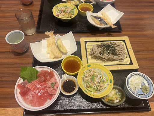 We both tried the Tuna sashimi set with various tempura and noodles. With the dollar to yen ratio what it is now 148 yen it was also inexpensive.