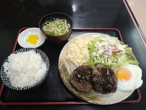 Read more近くのホテルに泊まって‥晩御飯を食べに適当に入ったお店でした。 入ってすぐ‥‥いらっしゃいませ〜の声もなく‥‥(¯―¯٥)たぶん‥昔はヤンキーだったんだろぅなぁ〜と思わせる髪型の店長‥‥と女性スタッフ2人。テーブルには店長が書いたのか‥手書きのメニュー!!?字‥字が‥‥‥。笑 ツッコミ所満載のメニュー表‼?見ながらオーダー。私は沖縄そば‥彼はゴーヤチャンプルーセット‥‥しばらく待ってると 女性スタッフが「お待たせしました」と持って来る。 沖縄そばは‥‥色々食べてきましたが‥‥普通です!!!ただ‥のってた肉が柔らかくて‥なかなか美味で!笑 たぶん‥何処かの肉屋さんで調達したんだろぅ‥‥‥。笑 ゴーヤチャンプルーも‥‥ま〜ま〜普通に頂きました。 お腹を満たすには普通がいぃ...