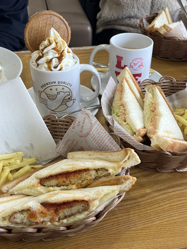 値段を忘れてしまいましたが、ご当地ホットサンド(もさ海老、蟹使用)とは別に、キャベツと卵、ケチャップとマヨネーズのシンプルな限定メニュー。飲み物とミニサラダ付き。サクサクパンにぎっしり具が入って美味しい♡