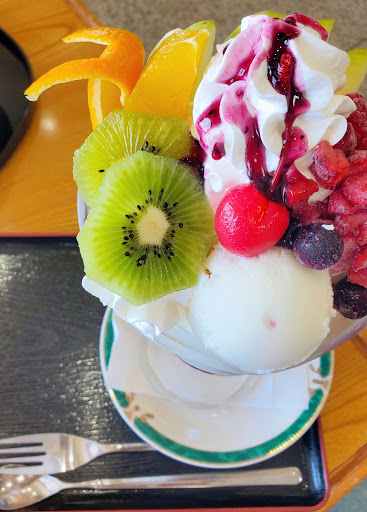 モーニングで、ヨーグルトとフルーツを食べようと…まさかここまでの大きさとは!大きな器の底には、時間が経ってもサクサクフレーク、ホイップクリーム、アイスクリーム、ヨーグルト、フルーツのてんこ盛り!ヨーグルトはほんのりした酸味で、優しい甘みの味。ホイップクリームは真ん中と上部に、これでもかと盛られていて、食べ切る頃にはお腹いっぱい♡新鮮なフルーツは、キウイ・バナナ・オレンジ・りんご・さくらんぼ・ベリーミックス(冷凍)で彩り華やか✨