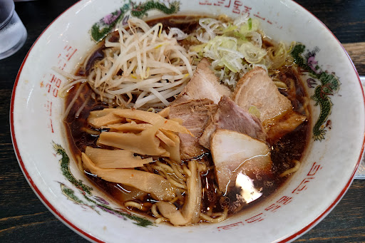 牛骨ラーメンを初めていただいた。 スープの色が違うが見た目が広島ラーメンに似ている。 ウェーブがついた細麺は硬めの茹で加減なのかこの辺りの特徴なのかはわからないが少しごわっとした食感で個性的。 以前に食べた広島ラーメンもこんな感じだったような気がする。 牛骨スープは、うまい! 言われなければ牛骨出汁とは分からず普通の鶏出汁だと思ってしまうくらい牛の臭みはない。 塩分は少し高めだが出汁の旨味がさらに濃い。 昔ながらのチャーシューは大好物。 連れがいなければ白メシを追加したと思う。 トッピングでお願いしたメンマはコリコリ。 広島ラーメンにものっている細めのもやしが麺によく合う。 牛骨ラーメンはこの辺りのご当地ラーメンのようだが出張ではなくラーメン...