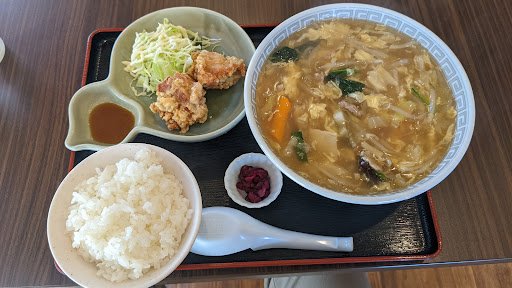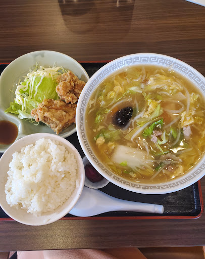 Read more2022年6月平日昼食にて1人で利用しました。 ちゃんぽん定食990円を注文。 ちゃんぽん、からあげ、ご飯の定食です。この定番感が良いですね! 店内設置のTVを見ながら食べてました。 長崎のちゃんぽんも好きですが、このちゃんぽんも大好きです。きくらげ、ほうれん草、人参、イカ、豚肉あたりまでは具を覚えています。価格が低めなので具の量は普通です。次回はプラス300円の大盛りにしてみて具の量がどうなるか確かめてみます(麺の量は現状で満足、具がもう少し欲しい)。 テーブルの消毒もきっちり行っ...