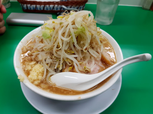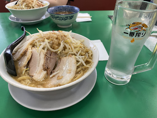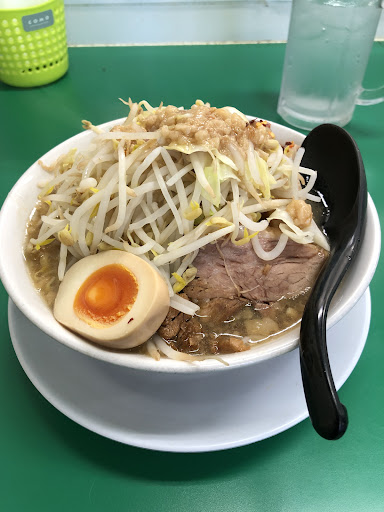 今まで行ってきた二郎系と少 し違うなと入り口で違和感を 覚えました。食券を購入し 何時ものコール&レスポンスが 入り「お! やっぱり二郎系だな!」と心を踊らせていました が、席に着くやな着丼がない。そう、違和感の正体は、店の雰囲気でした。 二郎系とは、思えないような 店のゆったり感。ロットを 気にしてない客達や店員さん達。カウンターの後ろには、テーブル席が存在し、そこで学生達やカップルが ファミレスのように過ごしていま た。 思わずジロリアンの血が騒ぎぶちギレそうになりましたが、