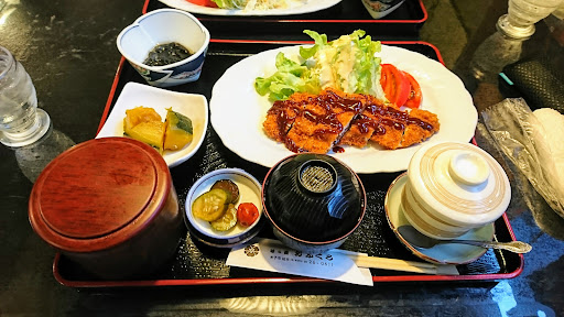 夜ご飯に伺いました。 この辺りは夜になると営業しないお店が多く、お店は限られてくるようです。 BGMは歌謡曲のようなのが流れていました。 おつまみも豊富で夜は居酒屋さんも兼ねているようです。 とんかつは勿論とんかつ屋さんの方が美味しいですが、それ以外のものは大体美味しかったです。ラーメンと小丼セットが850円で一番安く、私達の食べたとんかつ定食、生姜焼き定食は1200円でしたが、1500円や1800円のメニューが豊富でメニュー表の先頭に書かれていたので主力な感じがしました。 体調的に海藻を食べてはいけない私は、店員さんにもずく酢が食べられない事を伝えるとやまかけに交換してくださったのがと...