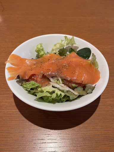 【サラダ】 行くたびにお皿が変わります。 平皿の時は野菜の量も多くお得な感じがしますが、写真の皿の時は何か野菜少なめで残念な気分になります。 けど、ここのドレッシングがとても美味しくはまっています。 ドレッシングだけで売って頂きたい位です。