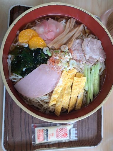 Read more道路沿いから小さな橋の道を渡ると店舗が南向きにあり、南側からちょっと出入口が一段分高くなっているので足元注意です。 テーブル席が四箇所のみある小さな店舗です。 水は自分で入れるセルフスタイル。出入口から見て右の厨房前にあります。 注文も聞きに来る訳でもないので店員に向かって言ううしかありません。 メニュー表もなく厨房上の壁にあるもののみです。 冷やし中華大盛りを注文。ハズレでした。 麺や具材は冷えていて良かったと思いますが 酸っぱいとは言えない酸っぱくない普通のラーメンのスープでしょう。冷やし中華向きに濃さは調整されたものだと思います。 中央にネギと一味がかけられ、缶詰のミカン2切れ、ピンクのガリ、メンマ、濃いめの味がついたチャーシュー2切れ、皮がほとんどない細切りのきゅうり、薄く焼いたであろう卵焼きを数枚、ハムの1枚を半分に切ったもの、ワカメの具材。細ちぢれ麺ではあるものの酸っぱさがない冷やし中華。冷えたマヨネー...
