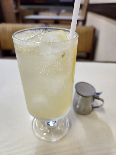 暑くてたまらなかったので、生レモンスカッシュをお願いしました。 きちんとレモンを絞ってくれる手作りのレモンスカッシュです。 そのまま飲むとすっぱーい!でもこれもまたおいしいですね。