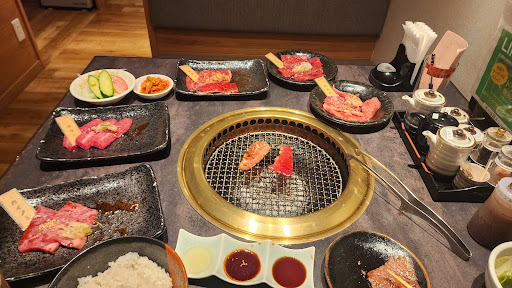 Read more赤湯の温泉宿に泊まった翌日の日曜日のお昼ちょうどに妻と行きました。すごく人気店で待つのは当たり前で混雑時は駐車場待ちになると口コミにあったのと遠方からの旅行者ということで某サイトにて前もって予約しておきました。駐車場に停められないとまずいと思い前倒しで到着したのですが予約時間まで40分くらい時間があったので駐車場に車を停め、徒歩で近所を散策していました。予約時間の20分前ごろ駐車場に戻り車で待機していました。10分前にお店の1階にある同系列の精肉店をみて5分前に2階の焼肉店に階段で上がって行きました。 2階に着き入り口に入ると5組ほどウェイティングされていました。予め予約しておいて大正解でした。従業員の方に予約していた名前を伝えると「こちらです」と席に案内されました。店内は満席で賑わっています。 注文するメニューは予め決めていたのですが確認のため注文前にもう一度メニューを見ました。 僕は「米沢牛上ロースランチ」、妻は「米沢牛上カルビランチ」を。追加で名物「肉汁ネギタン塩」✖︎2個&単品「米沢牛ハンバーグ」を注文。ランチはドリンク付きということでソフトドリンクを。前日に道の駅 米沢に寄った時もらっておいた「まちなびカード」にこのお店があったので注文時提示して聞いてみたら「まちなびカードで100円ずつ人数分割引になります。ドリンクサービスも記載がありますがランチにはドリンク赤湯の温泉宿に泊まった翌日の日曜日のお昼ちょうどに妻と行きました。すごく人気店で待つのは当たり前で混雑時は駐車場待ちになると口コミにあったのと遠方からの旅行者ということで某サイトにて前もって予約しておきました。駐車場に停められないとまずいと思い前倒しで到着したのですが予約時間まで40分くらい時間があったので駐車場に車を停め、徒歩で近所を散策していました。予約時間の20分前ごろ駐車場に戻り車で待機していました。10分前にお店の1階にある同系列の精肉店をみて5分前に2階の焼肉店に階段で上がって行きました。 2階に着き入り口に入ると5組ほどウェイティングされていました。予め予約しておいて大正解でした。従業員の方に予約していた名前を伝えると「こちらです」と席に案内されました。店内は満席で賑わっています。 注文するメニューは予め決めていたのですが確認のため注文前にもう一度メニューを見ました。 僕は「米沢牛上ロースランチ」、妻は「米沢牛上カルビランチ」を。追加で名物「肉汁ネギタン塩」✖︎2個&単品「米沢牛ハンバーグ」を注文。ランチはドリンク付きということでソフトドリンクを。前日に道の駅 米沢に寄った時もらっておいた「まちなびカード」にこのお店があったので注文時提示して聞いてみたら「まちなびカードで100円ずつ人数分割引になります。ドリンクサービスも記載がありますがランチにはドリンクがつくので今回は無しになります」と説明を受けました。 最初にドリンクが運ばれて来てから直ぐにランチのセット乗っているお膳が運ばれて来ました。内容はサラダ・漬物・煮物・韓国海苔・冷奴・オレンジ・箸・タレ入れ。 そこから5分後くらいに肉汁ネギタン塩が運ばれて来ました。お皿にはカットレモンとネギが包まれたタン塩2個。塩コショウで下味がついているっぽいです。思っていたよりちょっと小さいと感じましたが中にネギが入って包まれているのでこの大きさは納得です。早速焼き網の上に乗せて焼いていきます。日の強さですが座っていたテーブルはMaxでも「ちょっと弱いかな??」と感じました。 普通のタン塩より焼く時間がかかりましたがいい感じのところでカットレモンをさっと搾っていただいいます!!商品名の通り肉汁じゅわーです。ネギもいいアクセントでこぼれずいただけるのでほんと美味しかった。食べ終わるくらいにランチの「米沢上ロース」「米沢牛上カルビ」が運ばれて来ました。直ぐにご飯&お味噌汁が運ばれて来ました!お肉のお皿には焼き野菜の玉ねぎとかぼちゃが乗っていて上にネギが乗せてあるお肉が4枚。お肉をよく見ると「分厚い!!!」箸の先端3つくらいの厚さでしょうか。東京で食べたら倍以上の料金を払わないと食べれないレベルでコスパ抜群でサイコーです。流石、人気がある店です。地元だったら毎週通うレベルです。 焼き網の上に乗せて好みの焼き加減でいただきました!「言葉が出ないくらい美味しい!」妻の上カルビもいただきましたがこれも言葉が出ないくらい美味しかった。2枚目を焼く終わるくらいに単品で注文した「米沢牛ハンバーグ」が焼き音がするアツアツの鉄板に乗って運ばれて来ました。米沢牛ハンバーグが「どーーだ!」と言わんばかりにもやしの上に鎮座しています。鉄板にはブロッコリー・ポテト・人参のグラッセが乗っています。付け合わせもアツアツ美味しい!ハンバーグを箸でカットすると肉汁の洪水が!めちゃくちゃフワフワでマジで美味しい!もうご飯が止まりま