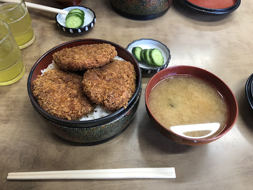 寄居町には何件かある「かつ丼」屋さん。 個人的にはここ「まるい食堂」さんが美味しい‼️ お肉はヒレ。衣はしっかりとお肉にはりついていて旨みを逃がさない。丁寧に細かめなパン粉をまとわせてます。揚げ油はラードでしょうか、サラダ油の味ではない、香りが良い。油がしっかりときられてじゅわ〜っとした脂っこさはないです。そのカツに甘塩っぱいタレを絡めて…塩辛すぎず甘すぎずちょうど良い味加減のタレをこれまたちょうど良いからませ具合…。思わず目を閉じてひたすら味わった…。器がまた食べやすい。円形の重箱、陶器のどんぶりではないです、底が平らなのでカツとご飯を最後までバランスよく口に運べます。和がらしはお好みで。おしんことお味噌汁が付いて税込み800円。申し訳ないです。 店内は4人掛けのテーブル2つのみ。丁寧に本当に丁寧に作るので先客があると待つでしょう。お弁当もあるのであらかじめ予約してお弁当をいただくのも良いかもです。あ、お弁当にしても美味しいと地元のかたもおっしゃってます。 もともと豚肉の食が古くからあるというこの地方。ホルモン焼きもやっていたということですがコロナ禍のためいろんな素材が手に入らないためにお休み中だとか。ご主人と奥さま2人で切り盛りされていらっしゃいました。お客さんとお話しするのが大好きみたいでお二人とも気さくに話しかけてくれます、楽しいひとときでした。夏の暑い中また、冬は足元が冷え込む中…大変ですがいつまでもこの味を提供して...