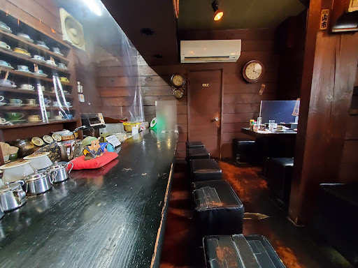 店内に一歩足を踏み入れると、非現実の世界が広がります。ひとことで言えば、レトロな空間…。古民家カフェなども流行っている時代ですが、オープン当時は、古民家風を狙って作ったわけではなく、長い年月かけて自然と歳をとってきたように見えます。カウンターの椅子なども補修されています。