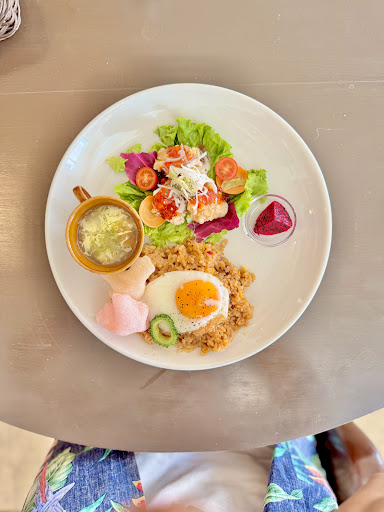 Read more与論島の繁華街、茶花にあるおしゃれなカフェ。 ギリシャ風の白を基調とした外観が印象的で、青い階段を上がると青いシーザーがお出迎え。 明るい店内に落ち着いたウッド調テーブルとソファ席が並ぶ。 ランチはパスタやナシゴレン、サンドなどが揃っている。