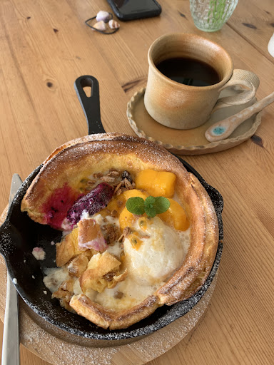 Read moreGorgeous view with absolutely delicious food! The Dutch baby pancake was amazing and they let you know in advance it will take some time for it to cook (like all Dutch babies do). The service was impeccable and they were soooo kind to let us sit and eat even though we were dirty and drenched from riding bikes in the rain. They also speak phenomenal English for those tourist like us who know very minimal Japanese. We also got their chicken sandwich (not pictured) and we debated getting seconds of it because it was...