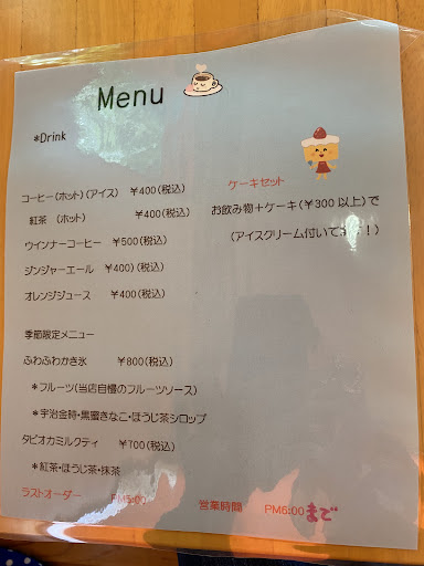 Read moreたしか以前には加悦工芸の里にお店があって、こちらに移転してこられたはず。 そう考えると結構長く営業されているお店。 贈答用の長持ちする焼き菓子やゼリーの品揃えが豊富だし、すぐに食べなきゃいけない生菓子も多品種あるし価格も100円台からあって家庭で楽しむにも財布に優しい。 また店内にテーブル3つ分のカフェコーナーがあって、お店のケーキを食べながらコーヒーなどのドリンクを飲んで一休みも。 夏季限定でふわふわ口どけカキ氷も、ちょっと高めだけど...