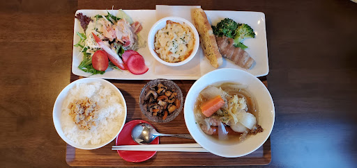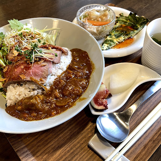 Read more比較的新しいカフェです。建物は大きいですが、店内は意外に狭いです。住宅街にあるので、この程度が適切なサイズかもしれません。カウンター席でランチを戴きました。土日のランチは、カレーライスとローストビーフ丼、このハーフ&ハーフも選択出来ますので、両取りのハーフ&ハーフを注文しました。+200円で食後の珈琲をお願いしました。 カレーはいかにも手作りな感じで美味しいです。野菜の甘さが際立ちます。ライスがカレーに合わせてあるのか、水分少なめで丁度良い感じです。麦とか五穀が入っているのかもしれません。小鉢もそれぞれ美味しくボリュームもあります。わかめスープも適量です。全体的にヘルシー、丁寧に作られていて、料金相当の価値はあります。 食後の珈琲は、デザート付きで、今回はヨーグルトで、シャインマスカットが入っていました。 気兼ねなく落ち着いた時間が過ごせるので、日常使いには良いです。食事メニューが少ないので、平日の日替わりも気になります。 オーナーさん?お手伝いさんは、相応の年齢の方で気取らない雰囲気です。テラス席もあるので、友人と一緒で天気の良い日なら、そ...