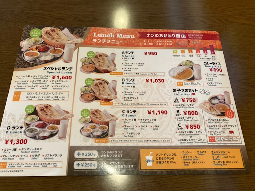 Read more吉田で本格的なカレー料理が食べられます。2020年11月現在GoToEat食事券(青富士の方だけ)利用可能。店内の席は2または4人席なので、それ以上だと座れないです(席を組み合わせる空間もない)。店の奥にはあまり仕切られていない喫煙席あり。愛想の良いインド人(?)さんが対応してくれます。我が家は5人なのでテイクアウト専門です。テイクアウト時はオーダー品をかなりの高確率で忘れるのでその場で品数チェックが重要です。ドリンクすべて忘れることからサラダのドレッシングが1つないことなんてザラです。店員さんの笑顔に惑わされないように。ドリンクからサラダまで10-20分くらいでパッキングしてくれます。テイクアウトメニューはなくて、すべてのメニューがテイクアウト可能です。ナンは地味で厚め。バター付きのものが欲しい人には物足りないでしょう。+200円でチーズ付きナンになります。お昼時には混みます。金谷にも同名ショップあり。Aランチ850円で大人の男でも十分のボリュームです。またテイクアウトしました。店員さんとても親切です。お盆の8/15...