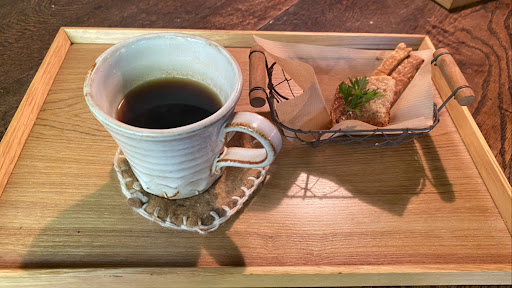 Read more国道187号線から細い道に入り、高速道路高架下を抜けた場所にお店はあります。緑に沢山囲まれた古民家のお店です。道沿いに看板も立っていますのですぐに分かると思います。駐車場は5台程度停められるスペースがありました。 店内に入るとまずは手作りパンや野菜がお出迎え。綺麗に並べられており、いずれも美味しそうでした。店内は暖炉で暖められ、クラシックが小音量で聴こえてきて物凄く落ち着けるお店です。お庭でも食事を楽しめるスペースがありましたよ。 コーヒーを注文しましたが、豆を挽く匂いがたまらなく、大変美味しかったです。オーナーも気さくな方で...