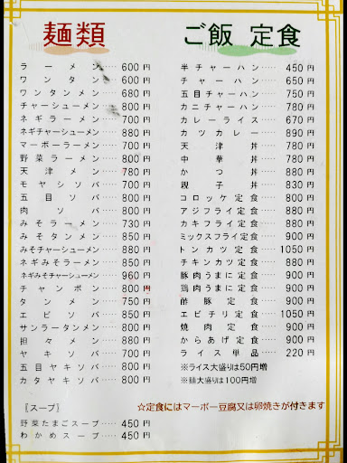 2023年9月4日 久しぶりに食べに行きました! ランチが有ったので、そちらを頼んだのですが、メニューのワンタンメンが無性に食べたくなり、急遽オーダーを変更し、ワンタンメンと半チャーハンを頼みました! 素朴な味わいと言うか、懐かしい味わいで、ワンタンメンを美味しく頂きました! 昔ながらの中華そばと言う感じです! このスープに、細麺がマッチしていて美味しかったです! 半チャーハンも久しぶりだったので、美味しく頂きました!
