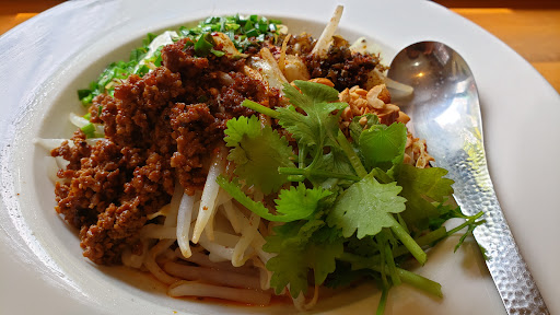 Read more四川燃麺を頂きました。 燃麺とは、四川にある油そばのような汁なしの麺料理です。 わざわざ四川燃麺(本当は宜賓燃麺)と名乗っているので厳しめに意見します。 まず、もやしは要りません。燃麺にはそんなものは入っていません。案の定水気が出て、油の濃厚さが損なわれています。 キャベツは要りません。そんなものは燃麺には入っていません。大きめの形と水分が、麺と油の一体感を損ねています。 ニラは要りません。そんなものは(以下略) 芽菜が少なすぎる。芽菜とは四川の漬物です。本来はこれが油のくどさをなくすアクセントになっているのですが、そもそも不要な野菜の水気で油の濃厚さが台無しになっている上、芽菜も少ないので味になんのメリハリもありません。 大蒜と生姜が足りない。味気ない。ただただそれだけです。 麺も論外。本場では切麺という生のストレート面か、最低でも挂麺という乾麺を使っています。日本の中華麺は麺そのものの水分が多いので、油と混ぜたときに油が馴染まないのです。本場の切麺や挂麺は油をよく吸い、麺とタレが一体となった濃厚な食べ物になります。 花椒面とピーナッツは良かったと思いますが、他が圧倒的にダメなので… 結論。これは燃麺ではありません。 日本人向けにアレンジしたと言っても、本来の良さが失われています。 これで他のお客さんに燃麺とはこんなものかと思われてしまうのが悔しいレベルです。